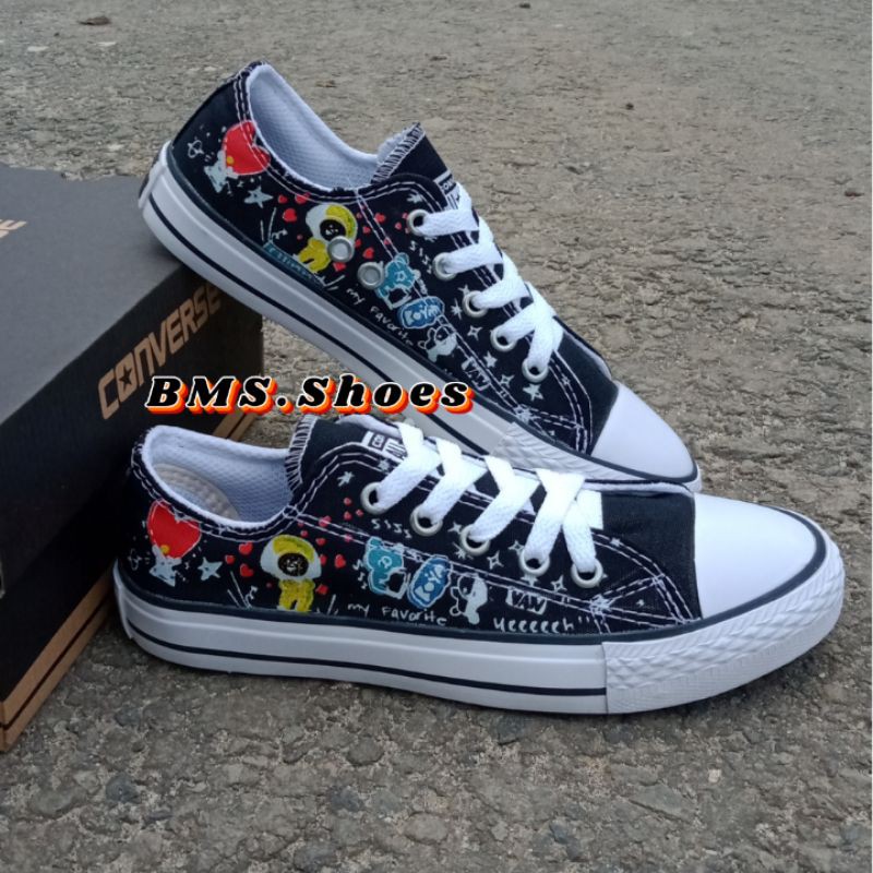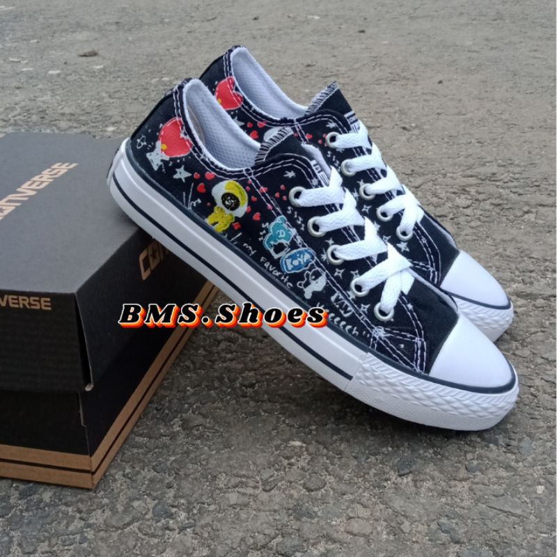 Harga Sepatu BTS BT21 Sepatu Anak Sekolah Warna Hitam Sneakers Tali