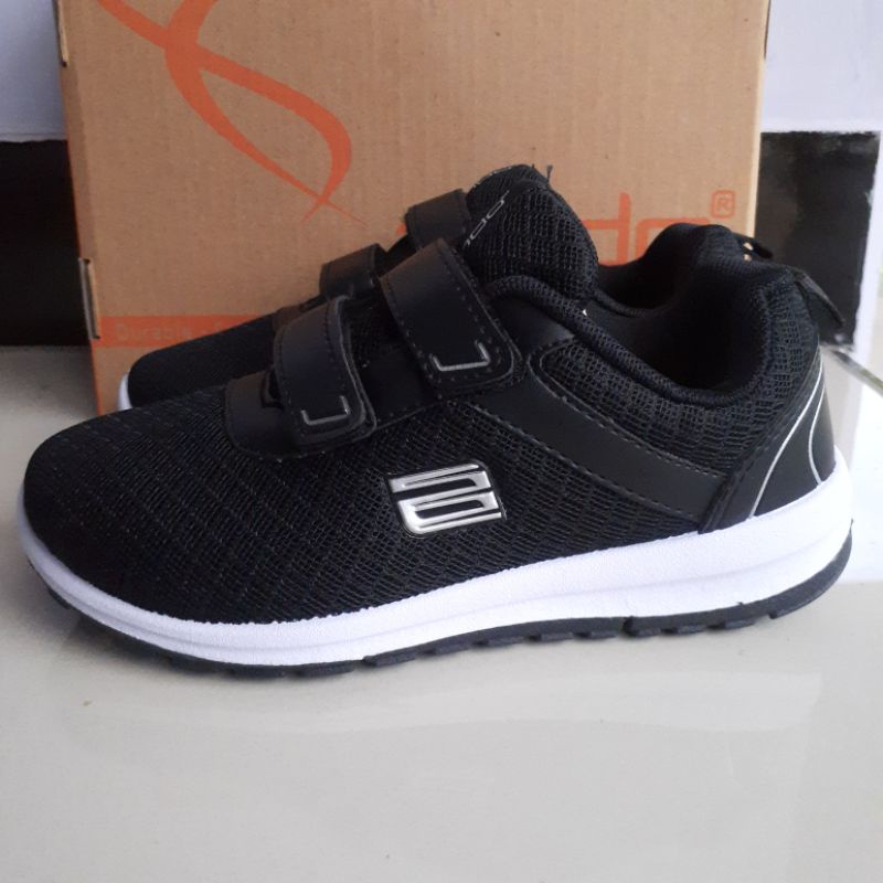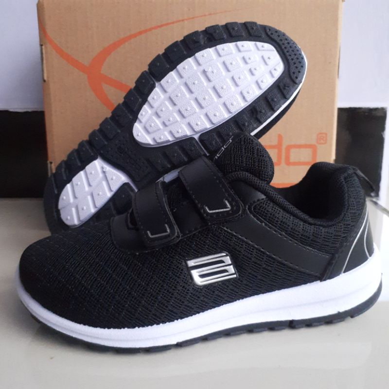 Alasan kenapa harus beli Sepatu anak ando aida velcro perekat hitam putih black white 100% original sekarang