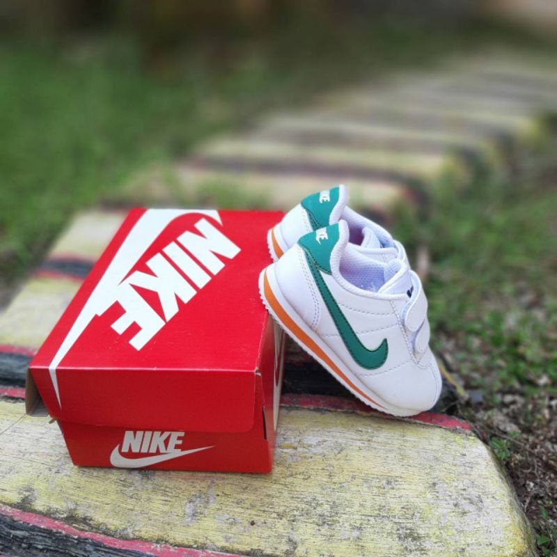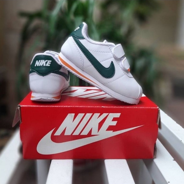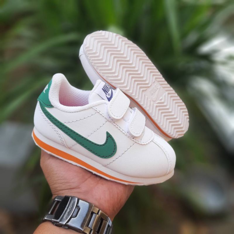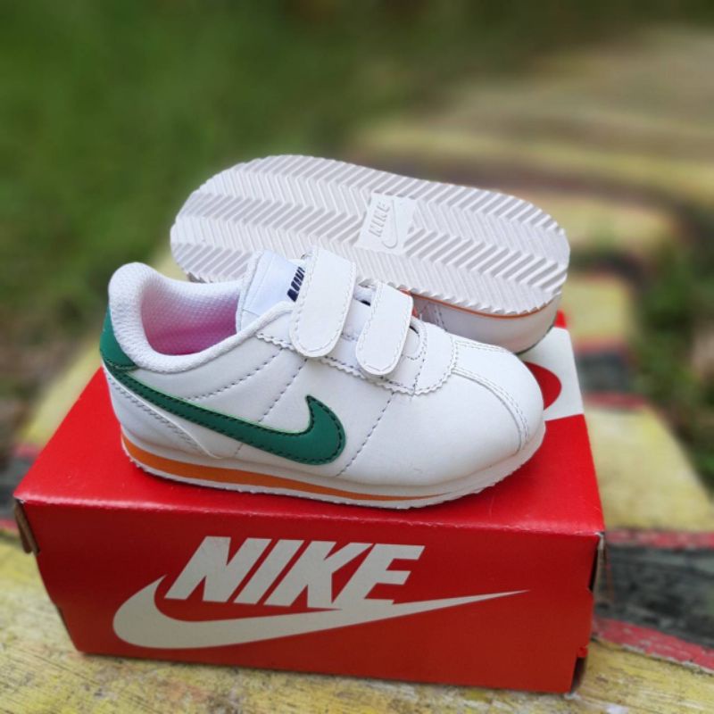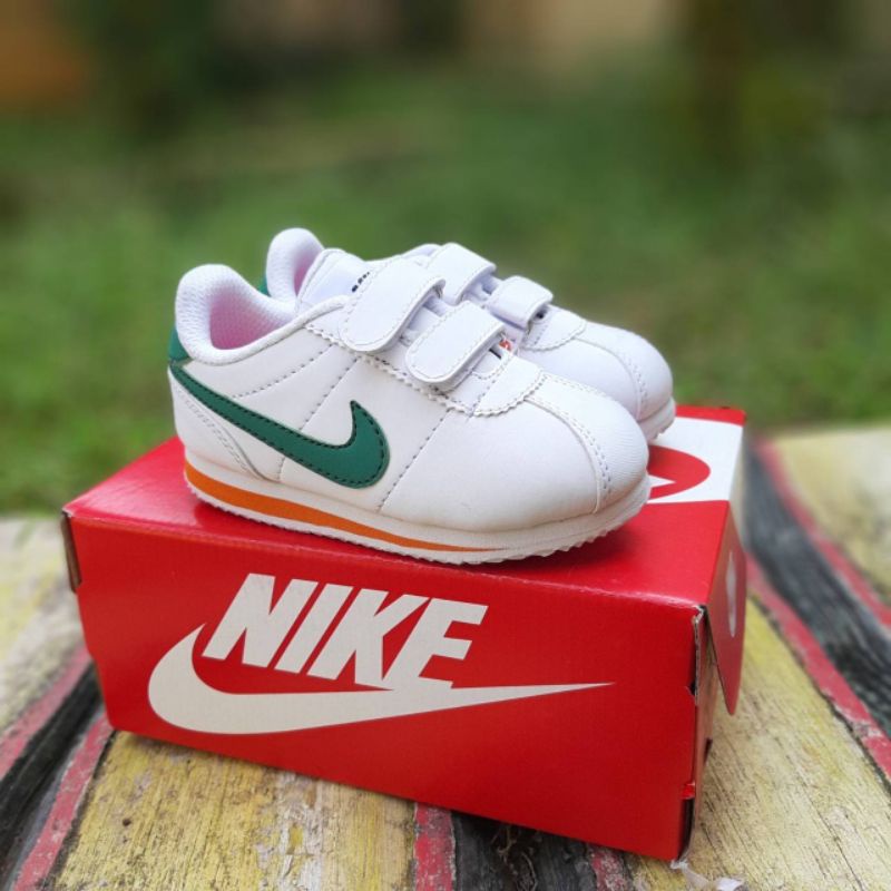 Harga Sepatu anak laki laki dan perempuan nike cortez white green velcro