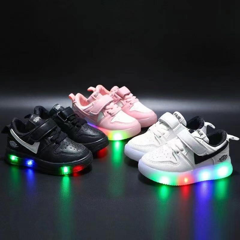Harga Sepatu Anak Lampu LED Import Ni*ke, Black/White - UNX 0375