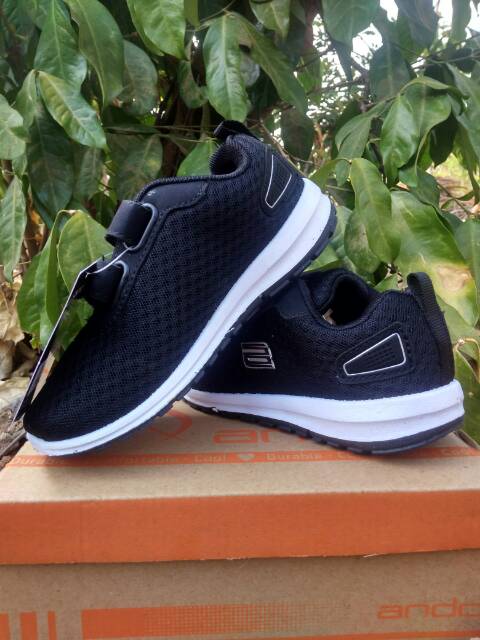 Harga Sepatu anak original ando zora velcro perekat hitam putih black white