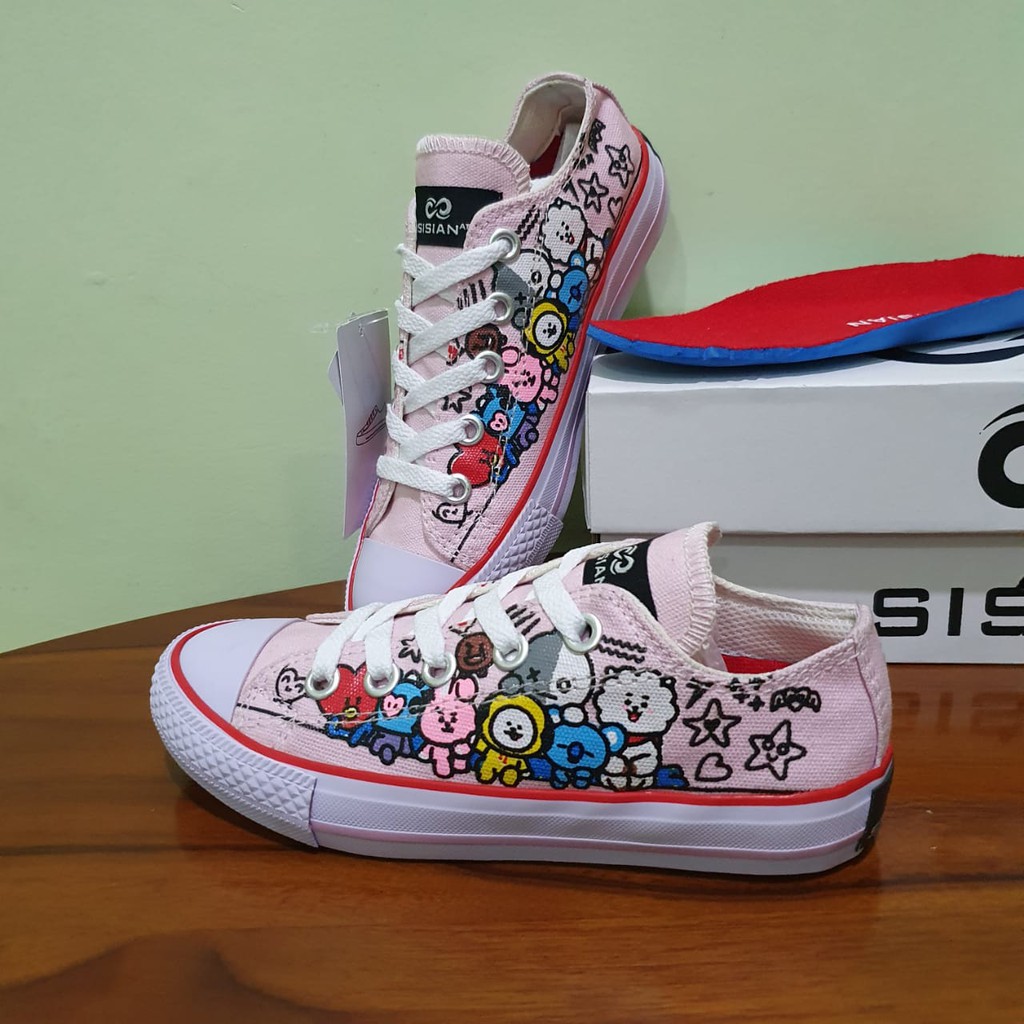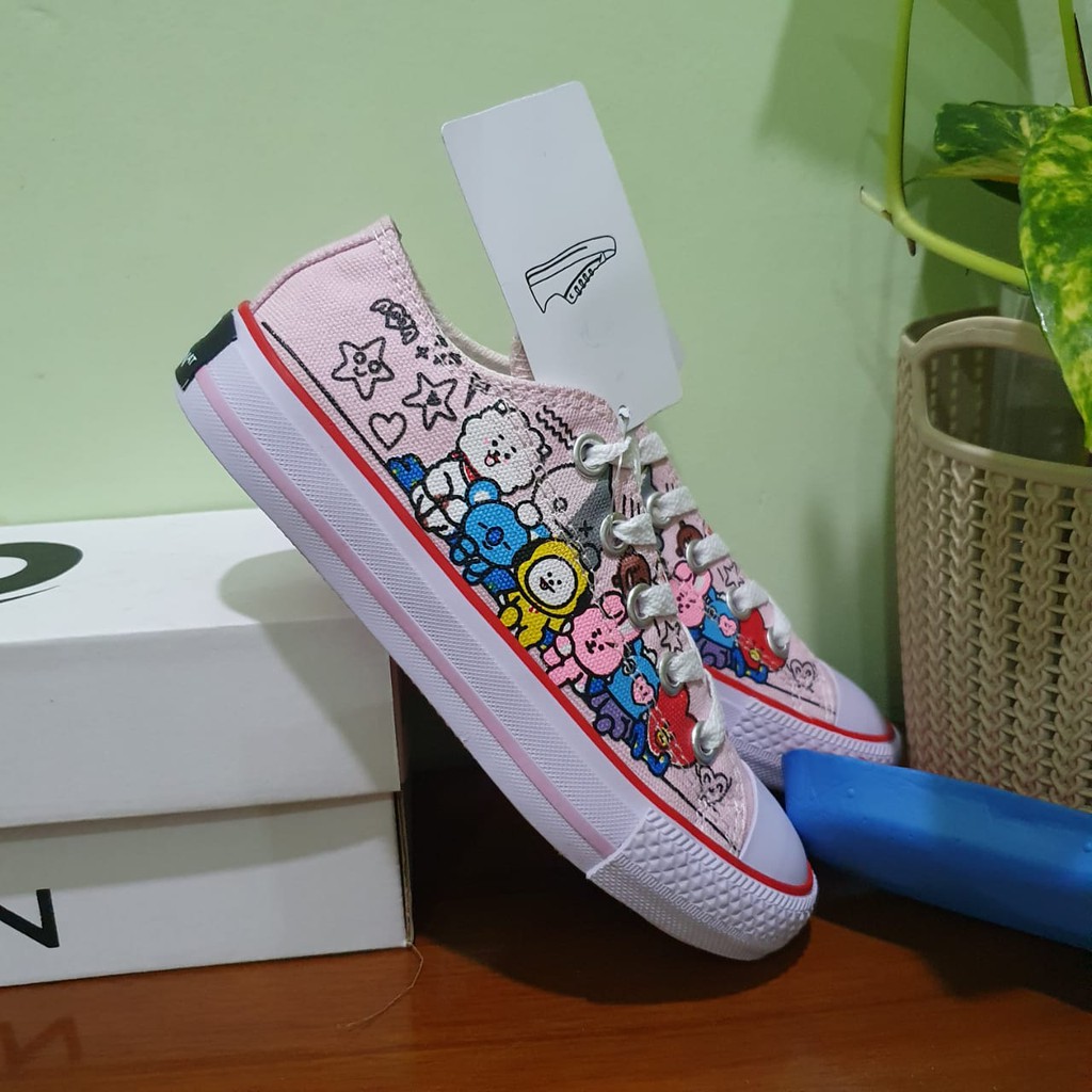 Sepatu Anak BTS Converse Junior Sneakers pink convers cewek Perempuan kartun karakter bt21