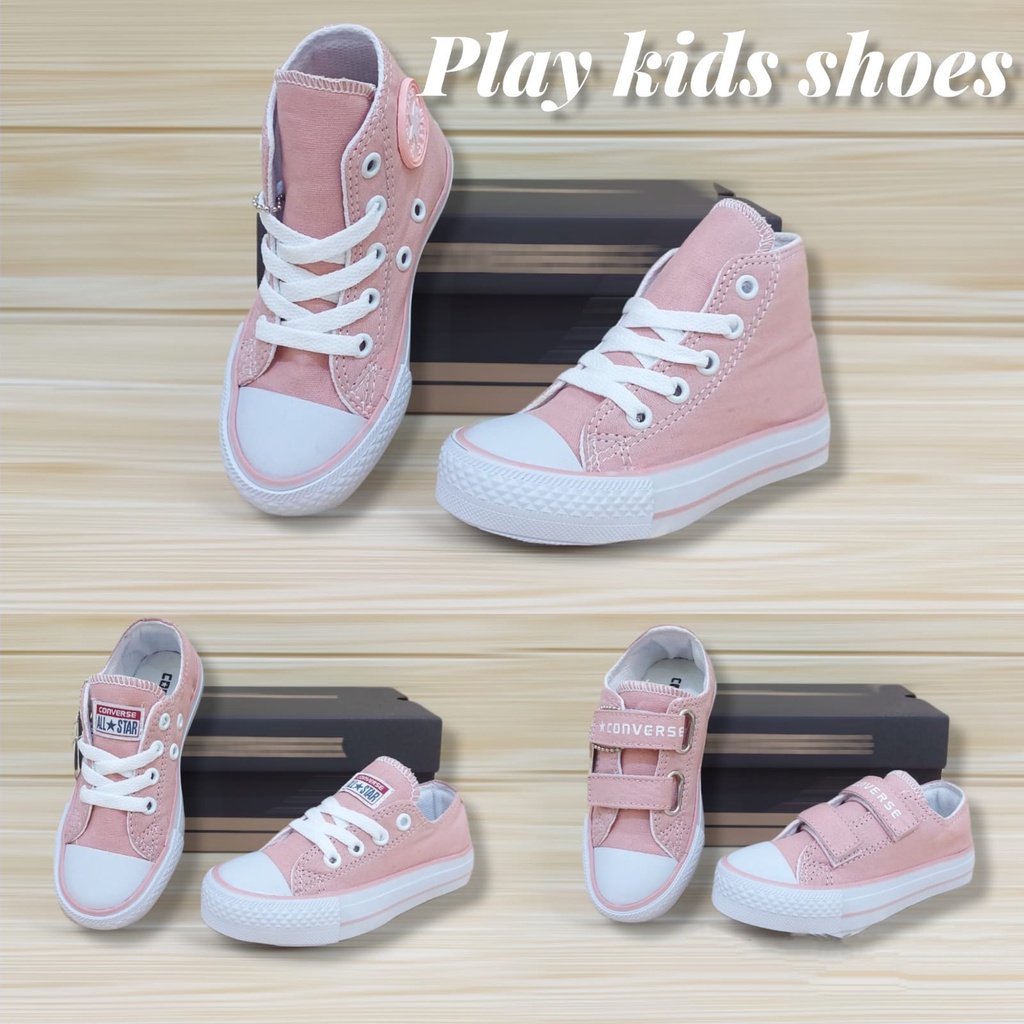 Harga SEPATU ANAK PEREMPUAN | SEPATU SNEAKER ANAK PEREMPUAN | SEPATU ANAK CONV3RS3 4LL ST4R WARNA PEACH TINGGI,PENDEK,VELCRO USIA 1-8 TAHUN SIZE 21-35