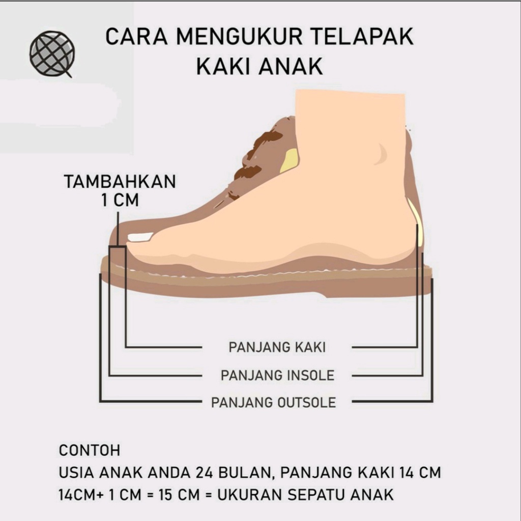 Produk ini memiliki 15 Variasi SIZE yaitu : SIZE 21,SIZE 22,SIZE 23,SIZE 24,SIZE 25,SIZE 26,SIZE 27,SIZE 28,SIZE 29,SIZE 30,SIZE 31,SIZE 32,SIZE 33,SIZE 34,SIZE 35,