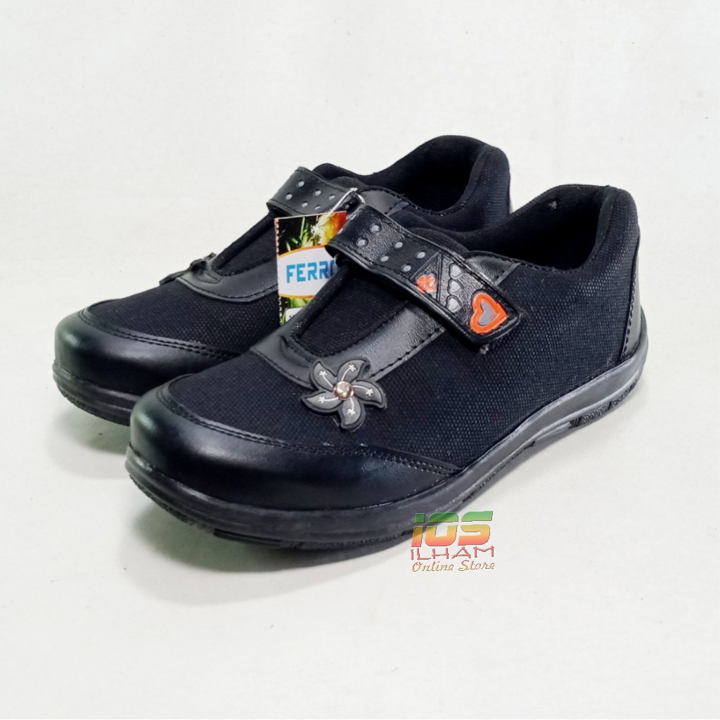 Harga Sepatu Anak Perempuan Sneaker Ferro F.03 Sekolah TK SD Size 26-35 Hitam