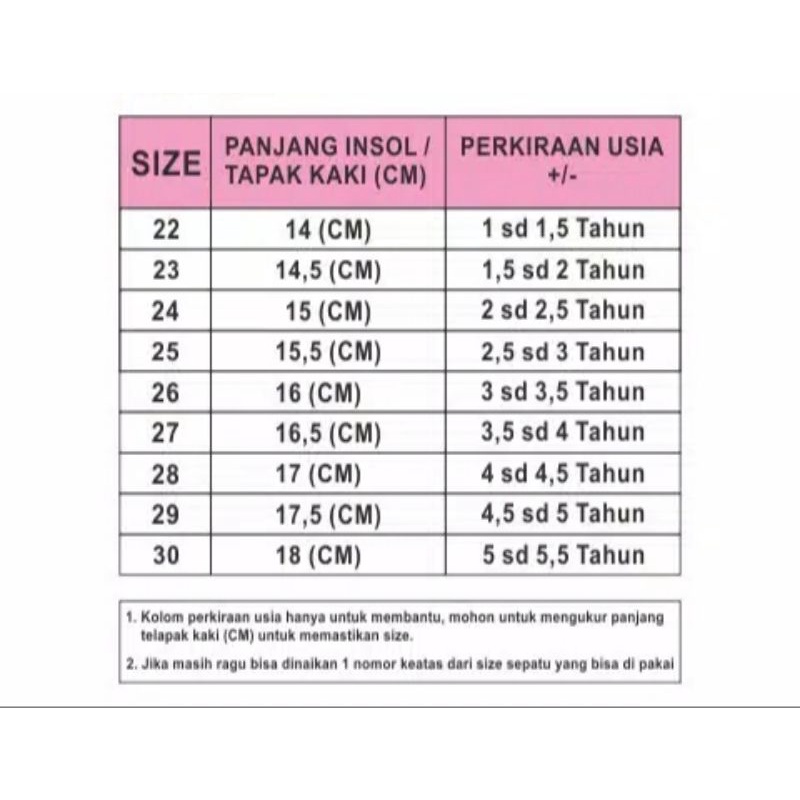 Produk ini memiliki 9 Variasi Ukuran yaitu : 22,23,24,25,26,27,28,29,30,